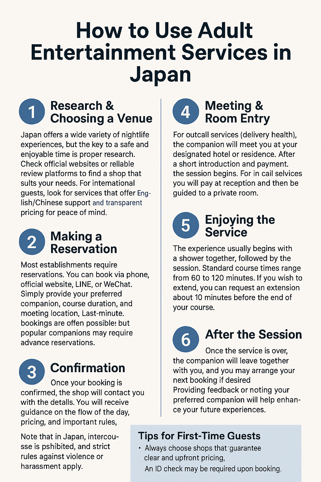 How to Use Escort Services in Japan 2025/11/01 ✨ How to Enjoy Nightlife in Japan ― Step by Step Guide ― ★ 1. Research & Choosing a Venue Japan offers a wide variety of nightlife experiences, but the key to a safe and enjoyable time is proper research. Check official websites or reliable review platforms to find a shop that suits your needs. 👉 For international guests, look for services that offer English/Chinese support and transparent pricing for peace of mind. ★ 2. Making a Reservation Most establishments require reservations. You can book via phone, official website, LINE, or WeChat. Simply provide: Your preferred companion Course duration Meeting location Last-minute bookings are often possible, but popular companions may require advance reservations. ★ 3. Confirmation Once your booking is confirmed, the shop will contact you with the details. You will receive guidance on the flow of the day, pricing, and important rules. ⚠️ Note: In Japan, intercourse is prohibited, and strict rules against violence or harassment apply. ★ 4. Meeting & Room Entry For outcall services (delivery health), the companion will meet you at your designated hotel or residence. After a short introduction and payment, the session begins. For in-call services, you will pay at reception and then be guided to a private room. ★ 5. Enjoying the Service The experience usually begins with a shower together, followed by the session. Standard course times range from 60 to 120 minutes. If you wish to extend, you can request an extension about 10 minutes before the end of your course. ★ 6. After the Session Once the service is over, the companion will leave together with you, and you may arrange your next booking if desired. Providing feedback or noting your preferred companion will help enhance your future experiences. ✨ Tips for First-Time Guests 🟡 Always choose shops that guarantee clear and upfront pricing. 🟡 An ID check may be required upon booking. 🟡 Remember that Japanese nightlife culture emphasizes hospitality and respect. 🟡 Treat companions with courtesy and follow the rules — it ensures a more enjoyable experience for both sides. 👑 Official Links 👉 Cast List https://luxury-escort-tokyo-shinjuku.com/lang/en/girl 👉 Schedule https://luxury-escort-tokyo-shinjuku.com/lang/en/schedule 👉 Price System https://luxury-escort-tokyo-shinjuku.com/lang/en/system 👉 Contact https://luxury-escort-tokyo-shinjuku.com/lang/en/contact
